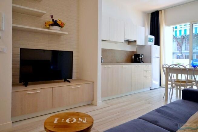 obývací pokoj s rozkládacím dvoulůžkem a kuchyňským koutem, dvoulůžková ložnice a pokoj s palandou, TV, trezor, kávovar, mikrovlnná trouba, koupelna zařízení, balkon a klimatizace. Renovovaný apartmán s indukční deskou, pračkou a myčkou.