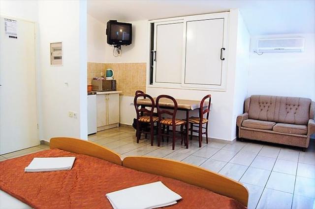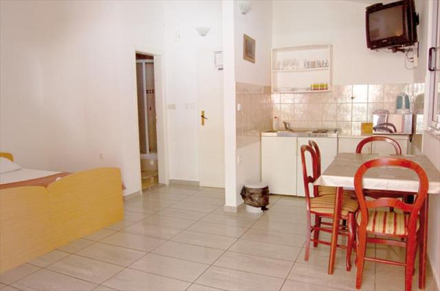prostorný čtyřlůžkový apartmán s možností přistýlky se nachází v prvním patře domu. Apartmán má dvoulůžkovou ložnici, prostornou obývací kuchyni s dvoulůžkem (s možností další přistýlky) a dobře vybavenou kuchyň, vlastní soc. zařízení (SWC) a balkon s posezením. Klimatizace za příplatek 5,- Euro za den |
