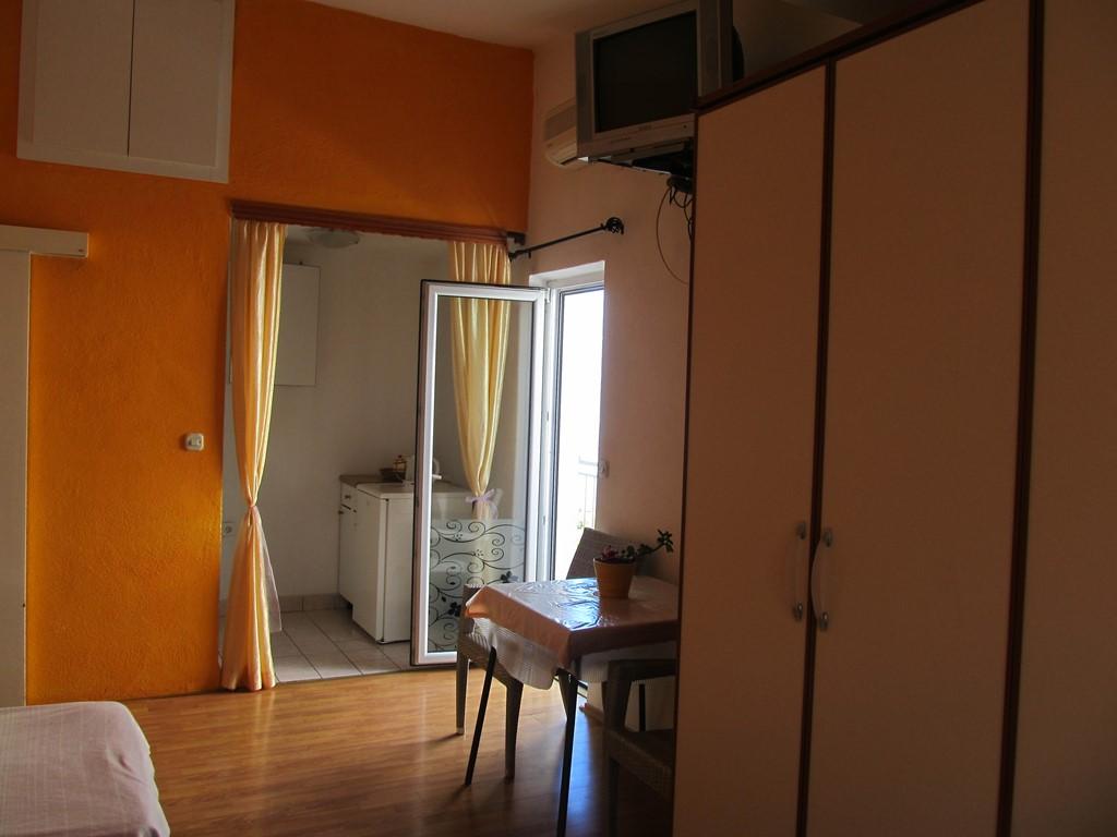 prostorově menší studio s manželským lůžkem. Součástí studia je vlastní sociální zařízení (koupelna se sprchovým koutem a WC), malá kuchyňka (lednice, rychlovarná konvice, kuchyňské vybavení pro základní stolování a přípravu jídla), balkon s venkovním nábytkem, klimatizace a wi-fi zdarma. Studio je orientováno bočním směrem k moři.