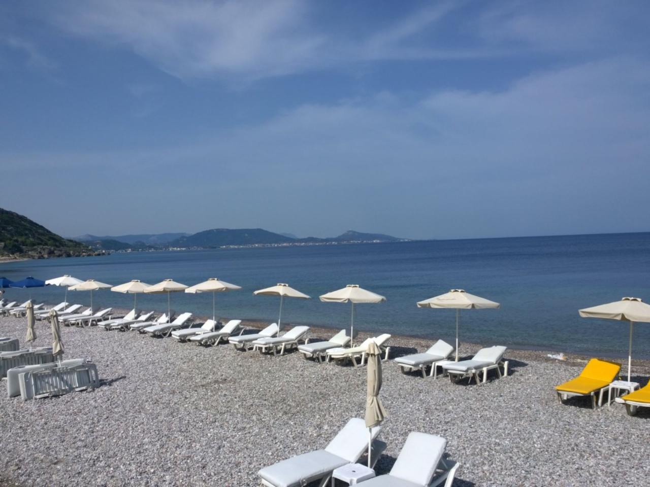 • přibližně 100 m od pláže • veřejná • písečná • štěrková • hotel oddělený od pláže ulicí • lehátka za poplatek |