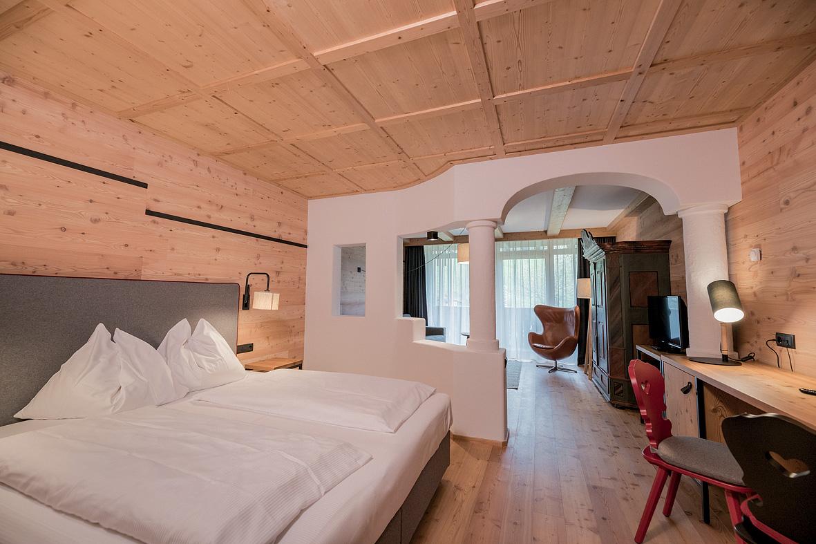 a Dolomiti di Sesto, v budově vedlejší pak pokoje Zirbenappartment