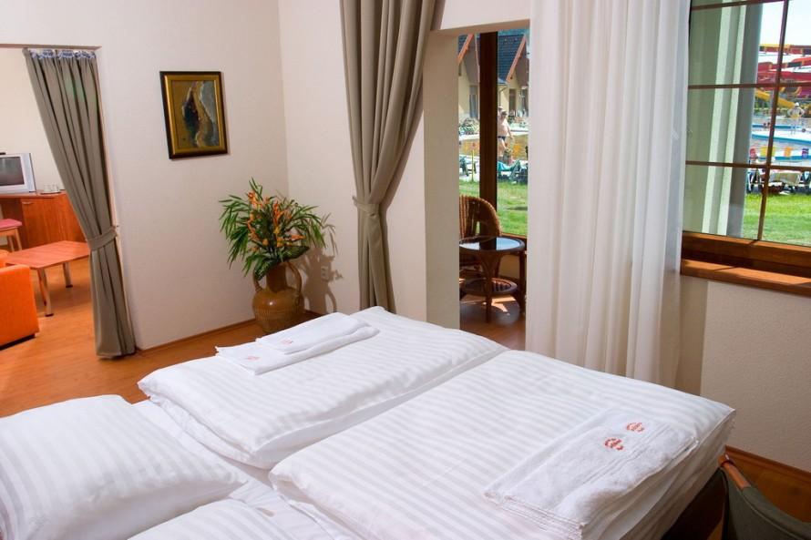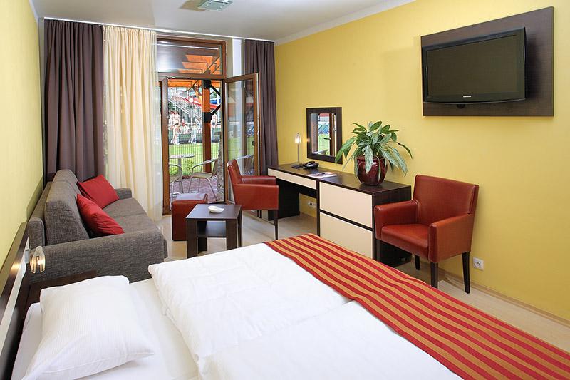 2lůžkové pokoje standard některé s možností přistýlky, 2lůžkové pokoje suite s možností 1-2 přistýlek, 2lůžková studia některá s možností až 2 přistýlek a kuchyňským koutem a 2pokojový apartmán s možností 2 přistýlek. Vybavení - sprcha, WC, LCD-TV, rádio, trezor, telefon, WiFi, lednička a minibar, internetová přípojka. Všechny pokoje jsou nekuřácké, některé jsou s balkónem. V prostorách hotelu se nachází restaurace. Hotel má přímo vstup k termálním bazénům s možností přerušení. Všechny pokoje jsou nekuřácké. V nabídce hotely Bešeňová ***, hotel Galerie **** tyto hotely mají přímí vstup na bazény.