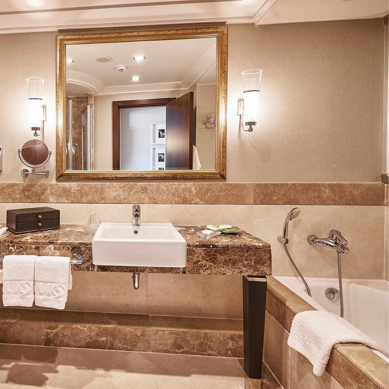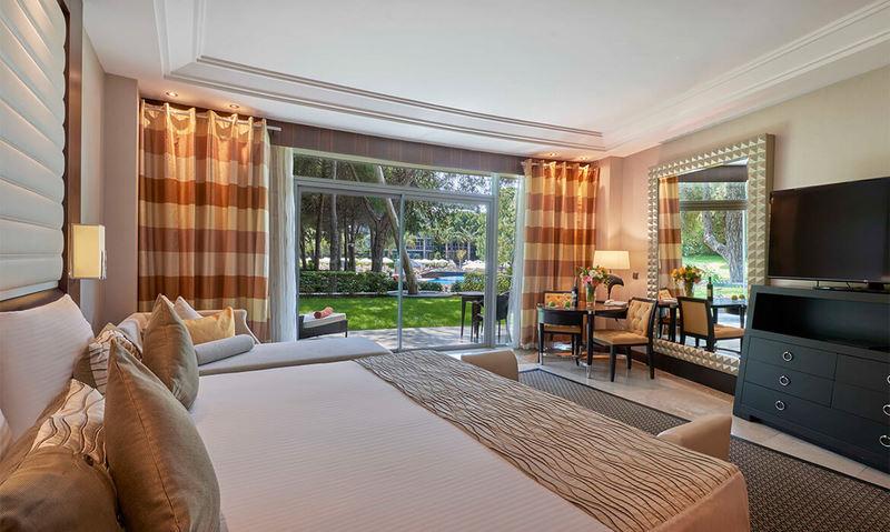 hotel nabízí pestrou škálu typů ubytování, některé části jsou zahrnuty do konceptu VIP. Hotelové pokoje (celkem 516 pokojů) se dělí do kategorií Superior (52m m2, kapacita 2-4 osoby), pokoje Family a Superior Family (84-104 m2, kapacita až 6 osob, 2 propojené pokoje) jsou velmi prostorné, elegantně zařízené, mají sociální zařízení se sprchou nebo vanou, vysoušeč vlasů, župan, přezůvky, klimatizaci, TV, telefon, WiFi připojení a trezor, coffee/tea set, pracovní stůl, balkon nebo terasu s posezením (výhled na okolí, na zahradu, boční na moře-nutno sjednat předem). Dále lze sjednat ubytování v suitách Deluxe (80 m2, kapacita 4 osoby), President a King (160-240 m2, kapacita 4 osoby). Jedná se o luxusně zařízené suity s obývací částí a výhledem na okolí, na bazény nebo boční výhled na moře). V nabídce je i 5 vilek, které jsou rozmístěny v zahradách (na vyžádání). Hotel disponuje i pokoji s bezbariérovými přístupy. |