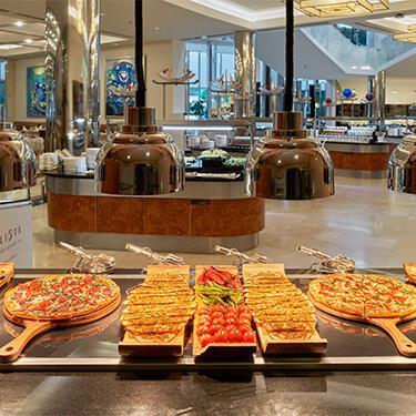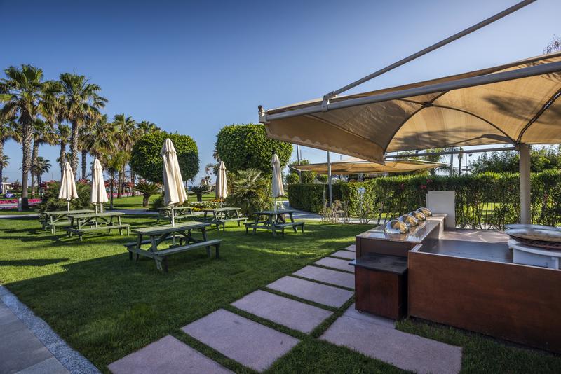 koncept All inclusive stravování-zahrnuje plnou penzi podávanou formou bufetu, během dne lehké občerstvení (pečivo, zákusky, zmrzlina, káva, čaj, ovoce), neomezené množství rozlévaných alkoholických a nealkoholických nápojů místní výroby. U večeře je vyžadováno formální oblečení (dlouhé kalhoty u mužů). Pro nejmenší hosty je k dispozici dětský bufet. Hosté mohou (po předchozí rezervaci) využít některé z luxusních a´ la carte restaurací. |