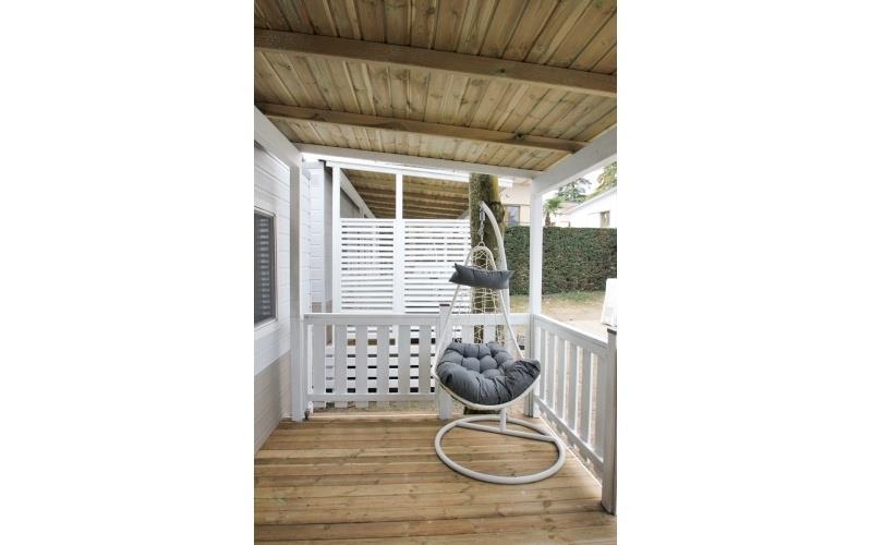 mobilhomy jsou standardně zařízeny, vždy s vybaveným kuchyňským koutem, SPR+WC, klimatizace (za příplatek), částečně krytá dřevěná terasa se zahradním nábytkem a grilem. |