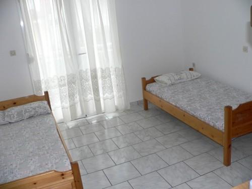 Penzion CHARIS - 2-3 lůžková studia (možnost 1 přistýlky) s TV, cca 12 min. chůze od pláže (cca 850 m). Studia jsou v 1. patře. V některých studiích možnost klimatizace (á cca 8€/den). Studia mají vždy vlastní sociální zařízení a kuchyňku, terasu nebo balkón. Ve studiích nejsou věci osobní a hygienické potřeby, ručníky, mycí a úklidové prostředky, žehlička. Lůžka jsou s povlečením. Voda je pitná. Kuchyně jsou vybaveny základním vybavením (lednice, vařič, základní nádobí). Studia jsou jednoduše zařízená a vybavená. Přistýlka je na tzv. francouzské posteli (1 a půl lůžka, vhodné pro dítě). |