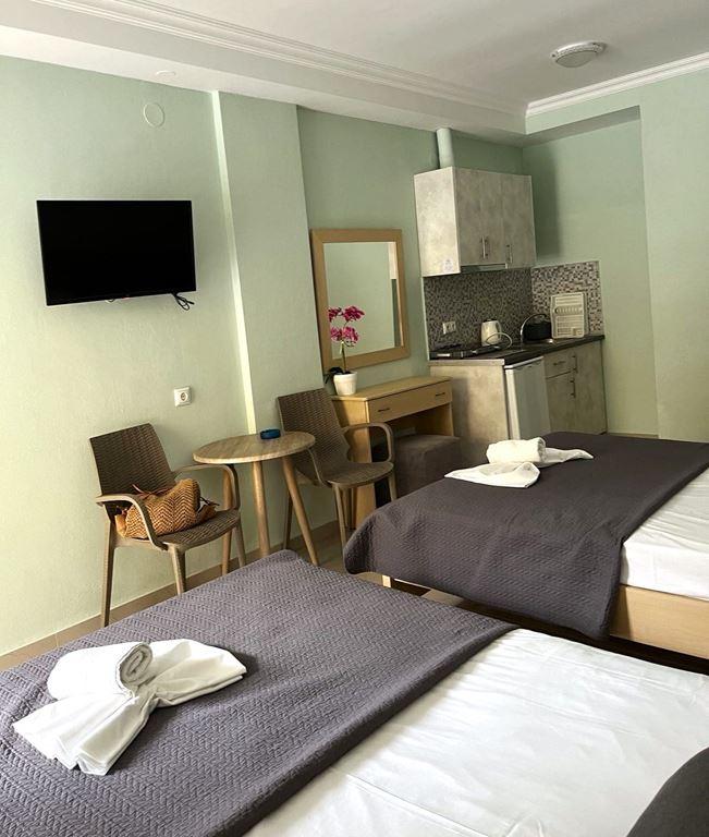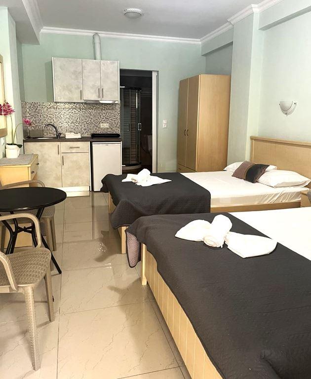 pobyt nabízíme bez stravy s možnost vaření z vlastních zásob nebo s polopenzí. Jednoduché servírované snídaně (pečivo, uzeniny,vejce, sýr, zelenina, káva nebo čaj), bohaté a chutné večeře servírované o dvou chodech, malý dezert. Nápoje nejsou zahrnuty v ceně. Stravování se podává v hotelové restauraci cca 60 m od domu, výborná řecká kuchyně.