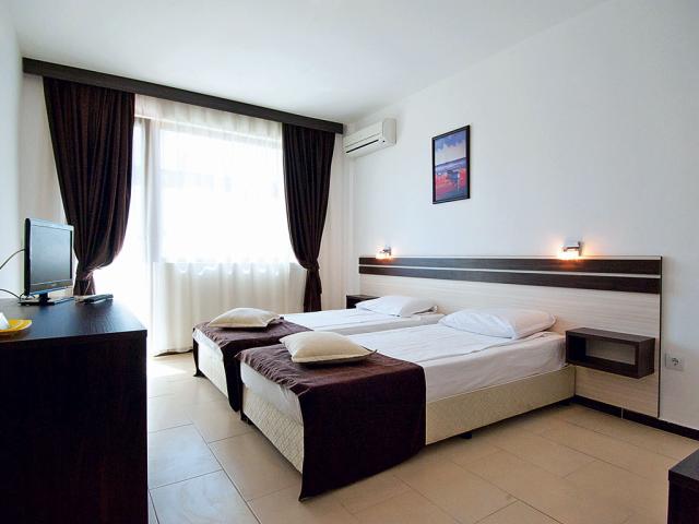 Pokoje s balkonem a sociálním zařízením (sprcha, WC) jsou klimatizovány (klimatizace zdarma) a vybaveny TV/SAT a chladničkou. Možnost jedné přistýlky. Maximální obsazenost tři dospělí. Dále jsou zde k dispozici i apartmány A 2+3 (dvě místnosti - ložnice a pokoj se dvěma lůžky, každá s balkonem a klimatizací - čtyři lůžka a jedno rozkládací křeslo). Apartmány jsou klimatizovány (klimatizace zdarma) a vybaveny TV/SAT a chladničkou. |