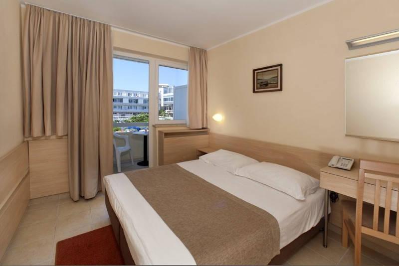 Zelené Laguny. Hotel leží cca 5 km jižně od centra Poreče. Pláže jsou přírodní kamenité, oblázkové nebo betonová plata ve vzdálenosti cca 100 m od hotelu. Venkovní bazén s mořskou vodou. U bazénu jsou lehátka zdarma (omezené množství). Vodní atrakce pro děti. |
