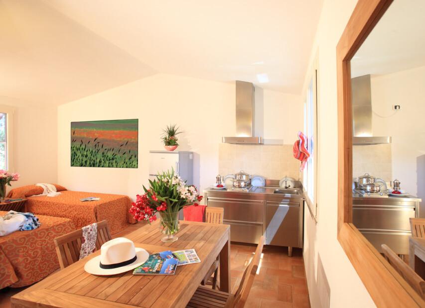 Ubytování je zajištěno v přízemních řadových zděných vilkách. Apartmány ve vilkách jsou jednoduše a funkčně vybaveny, mají vlastní sociální zařízení, klimatizaci a verandu, pro každý je vyhrazeno parkovací místo.