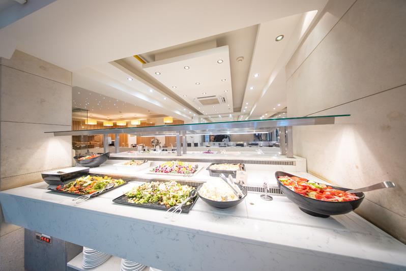 hlavná reštaurácia v hoteli Glaros Beach • à la carte reštaurácia so stredomorskou a krétskou kuchyňou • cocktail bar • vonkajší bazén