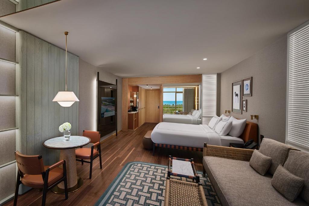 seznam nabízených služeb: Spa centrum s možností masáží a relaxace. Soukromé turecké lázně pro individuální relaxaci a ošetření. Salón krásy a kosmetický salón pro péči o pleť a vlasy. Manikúra a pedikúra pro úpravu nehtů. Možnost provozování vodních sportů. Herní centrum s bowlingem, biliardem, videohrami a virtuální realitou. Soukromé lekce golfu pro zlepšení golfového umění. Soukromé lekce fitness s osobním trenérem. Lekce tenisu pro vylepšení tenisových dovedností. Golfový klub s možností hraní golfu. Vybavení na tenis pro sportovní aktivity. Prádelna pro vyprání a vyžehlení prádla. Pokojová služba s možností objednání jídla a dalších služeb od 07:00 do 23:00. Vysokorychlostní Wi-Fi internetové připojení pro pohodlný přístup k internetu. |