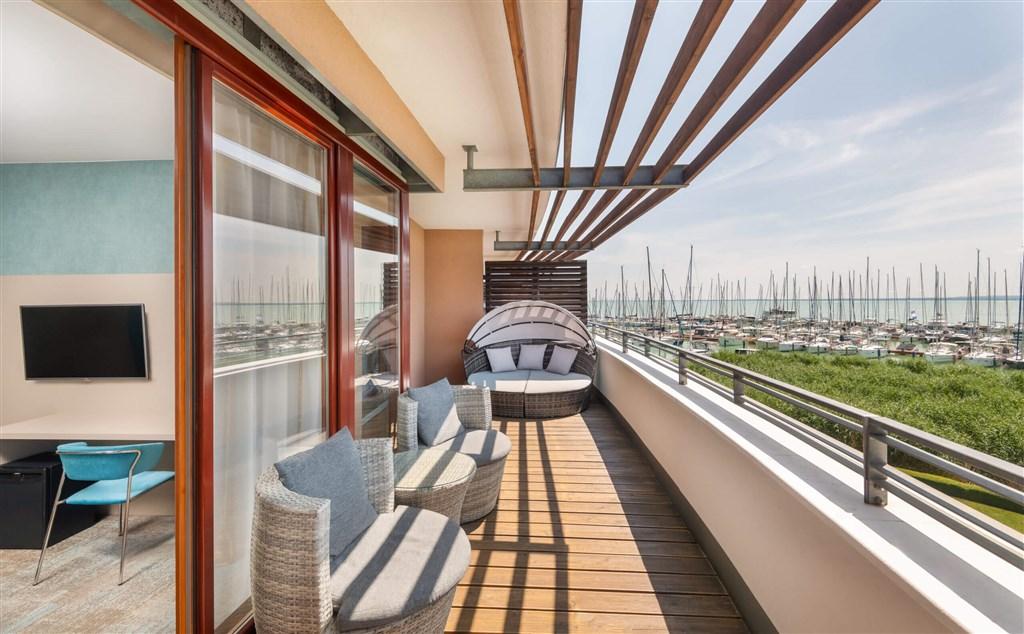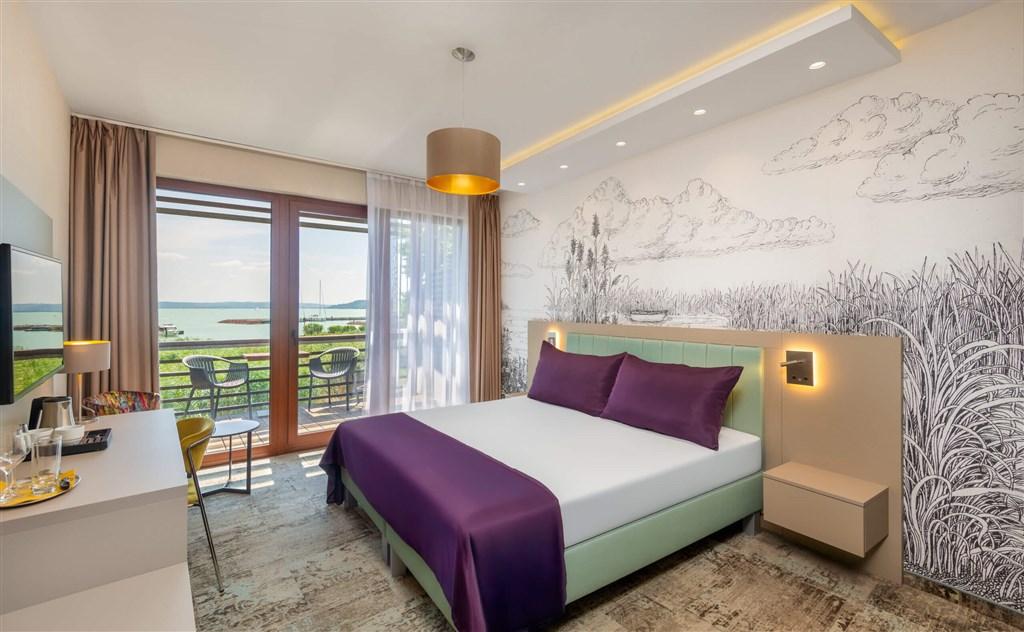 přistýlky, balkon 2+0 Premium - cca 25m2 dvoulůžkový pokoj, balkon, výhled na Balaton, poloostrov Tihány a přístav Pokoje jsou vybaveny: koupelna s wc, klimatizace, TV , minibar, rychlovarná konvice, WiFi, župan |