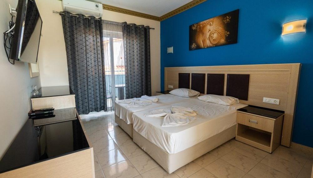 Pokoje jsou vybaveny vlastním sociálním zařízením a balkonem nebo terasou. K dispozici je také klimatizace (01/07 - 31/08), Wi-Fi, fén, trezor (za poplatek) a SAT/ TV, minilednička. Dvoulůžkový pokoj nabízí 2 samostatné postele nebo 1 manželskou postel.