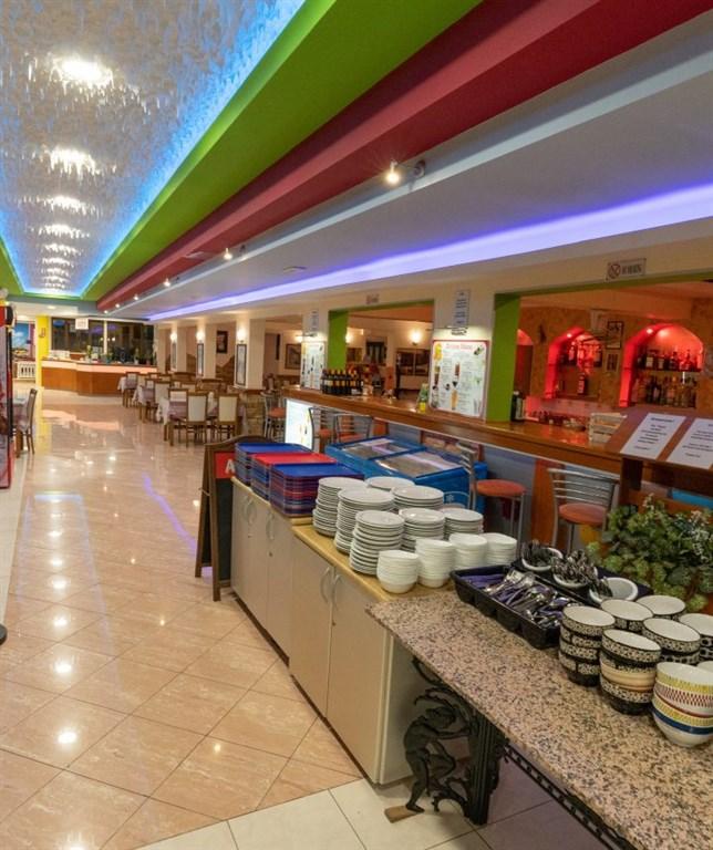 Vstupní hala s recepcí, Wi-Fi ve veřejných prostorech, hlavní bar, restaurace, pool/snack bar, bazén s odělenou částí pro děti, lehátka a slunečníky zdarma, minimarket