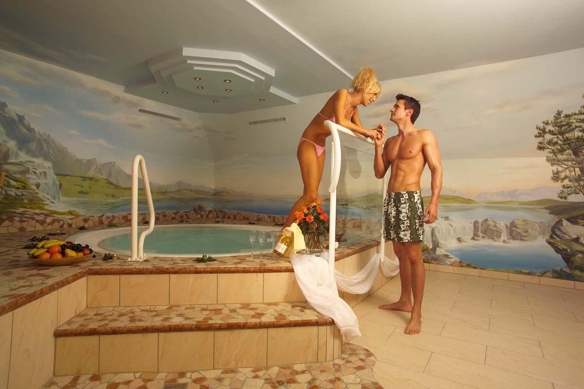 vířivka, 5 různých druhů saun, 3x relaxační koutek s lehátky, vybrané bylinkové čaje; posilovna