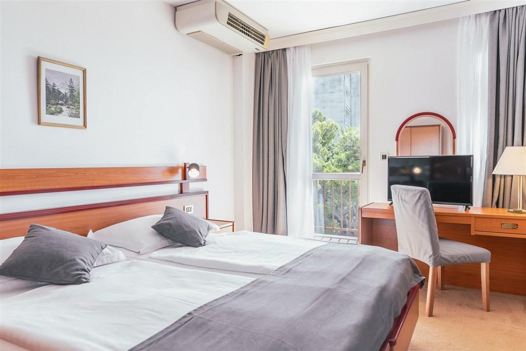 klimatizované 2lůžkové pokoje s vanou nebo sprchou a WC, balkonem, SAT TV, telefonem, fénem, sejfem, minibarem, některé s možností přistýlky. Pokoje typu SU jsou prostornější a mají možnost přistýlky (rozkládací křeslo, vhodné pro dítě do 13 let). Pokoje typu 2(+1) B-JS-ST mají 2lůžkovou ložnici a denní místnost s rozkládacím gaučem a prostornější typ 2+2 B-JS-SU - 2lůžková ložnice a denní místnost se dvěma rozkládacími gauči.
