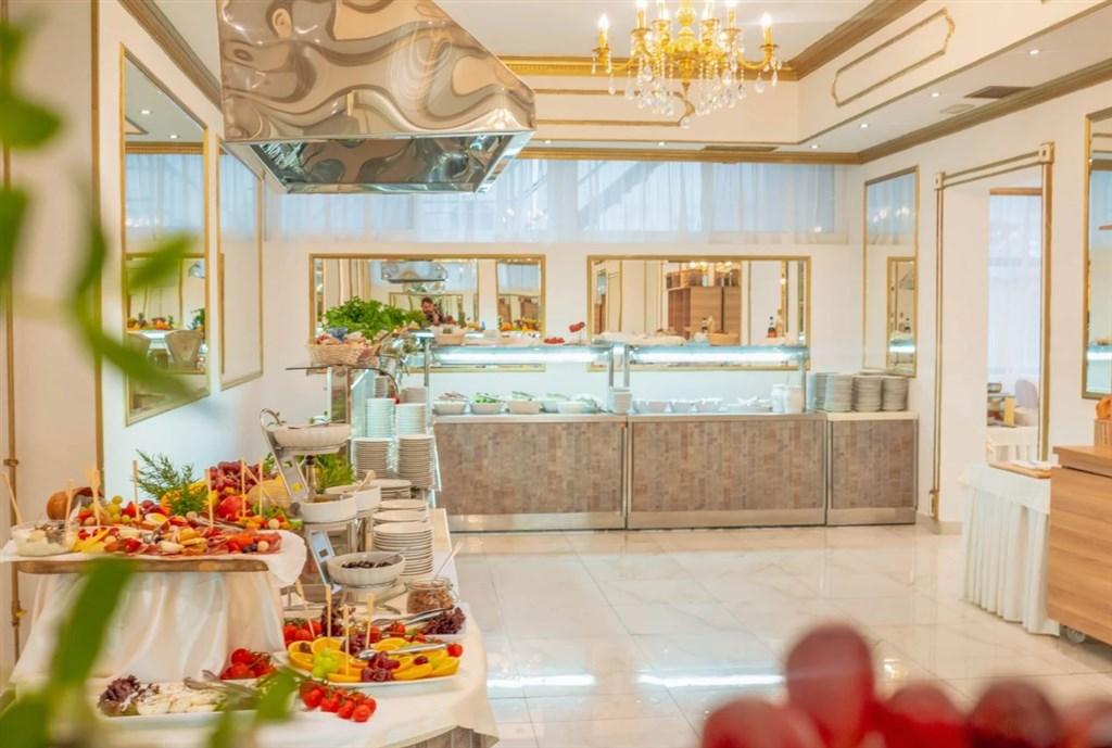 restaurace, plážová restaurace, lounge bar Borik (1.6.-15.9.), restaurace a wine bar Matrioska (1.5.-1.10.), aperitiv bar, kongresový sál, kosmetický salón, kavárna s terasou, terasa, WI-FI ZDARMA, parkoviště.