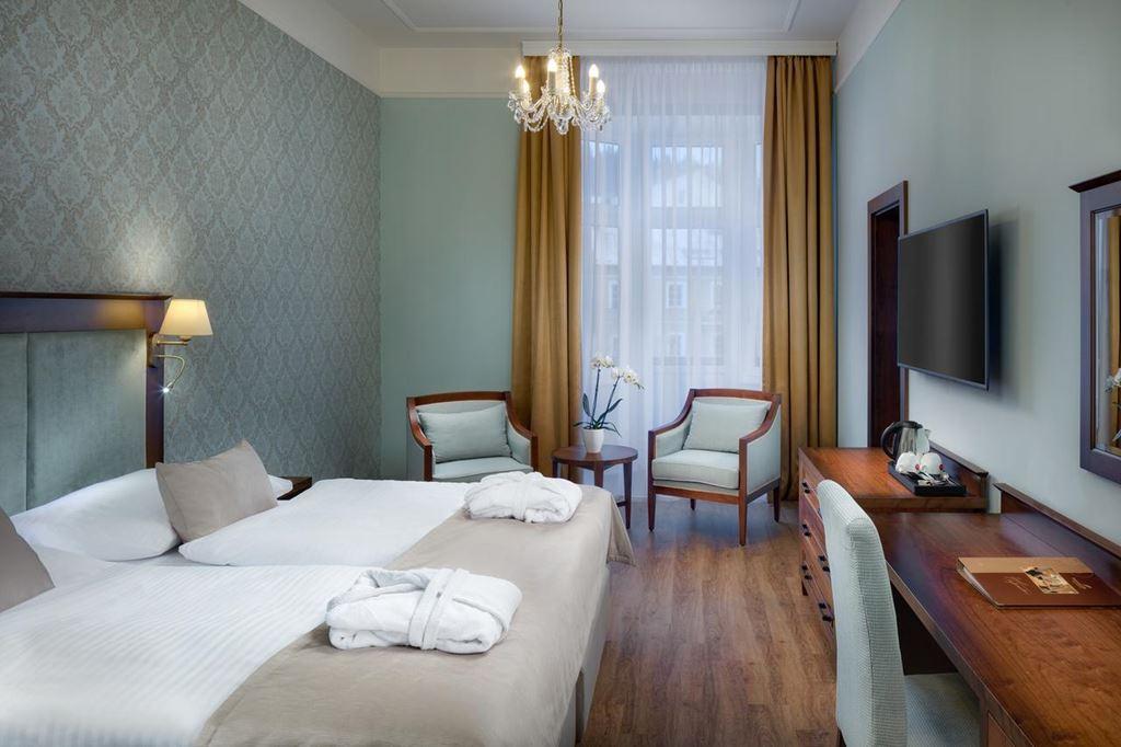 Hosté se mohou ubytovat v hotelu Hvězda v pokojích typu Premium, Junior Suite, Suite a Suite de luxe. Bezbariérový pokoj na vyžádání. Pokoje jsou vybaveny soc. zařízením, TV, telefonem, Wi-Fi internetem, minibarem, rychlovarným setem na kávu a čaj, trezorem, fénem, županem a pantoflemi. Pokoje Premium jsou orientované na jižní stranu s klimatizací. Jsou vhodné pro alergiky. Navíc mají také bidetovou sprchu, USB, žehlící set. Pokoje Premium s výhledem mají výhled na Goethovo náměstí. Další možnost ubytování je v pokojích Junior Suite (velké rohové pokoje) a Suite s odděleným obývacím pokojem a ložnicí, které mají ve výbavě také žehlící set a deštník.