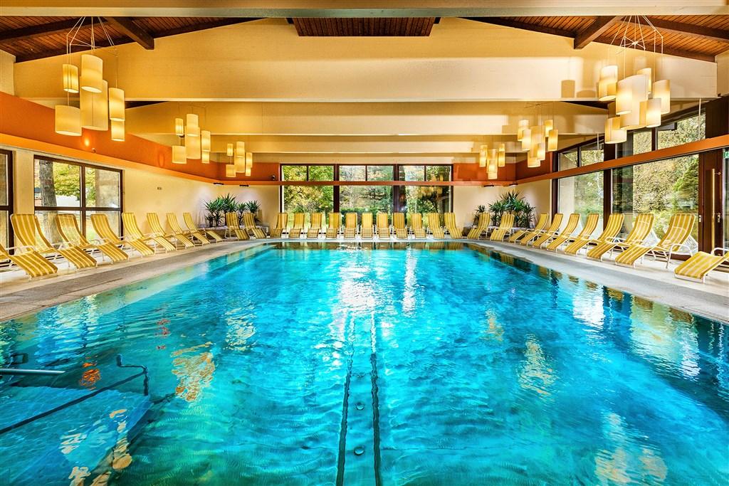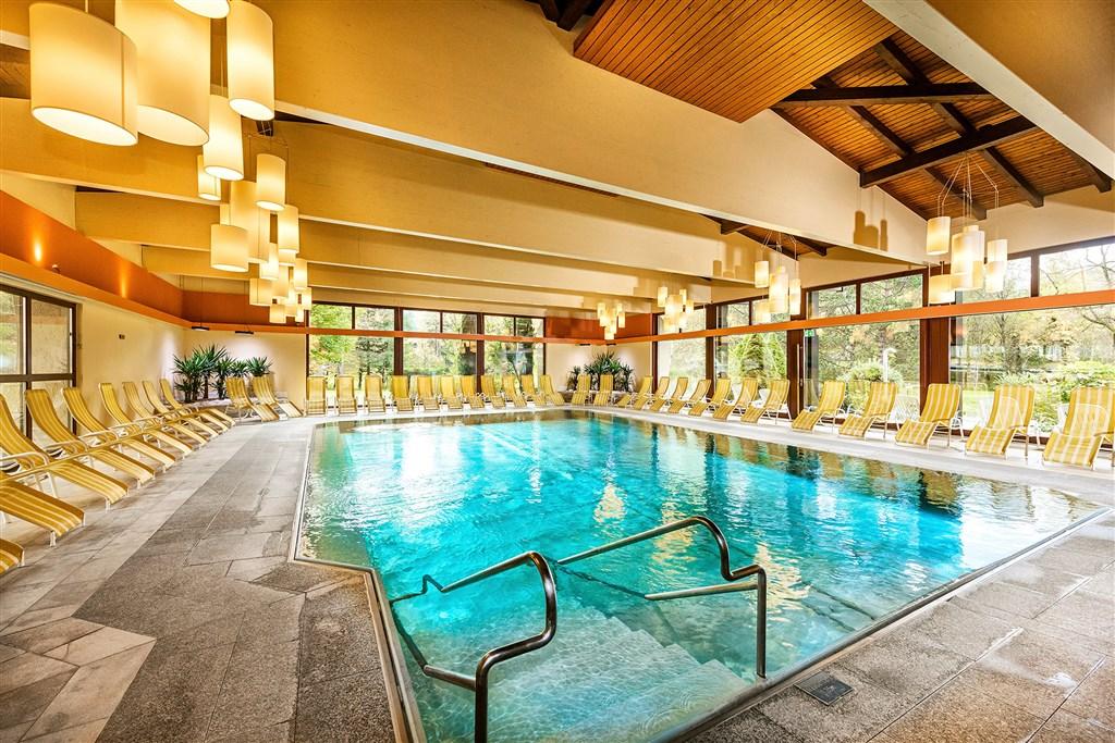 rozsáhlá wellness zóna s panoramatickým krytým bazénem (12 x 8 m),