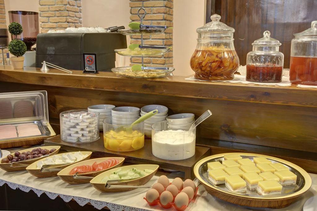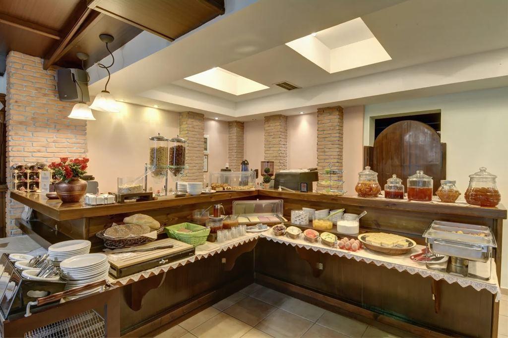 snídaně formou kontinentálního bufetu s domácími džemy a pečivem, tradičními řeckými sýry, místním medem, vejci, olivami a čerstvě upečeným chlebem. |