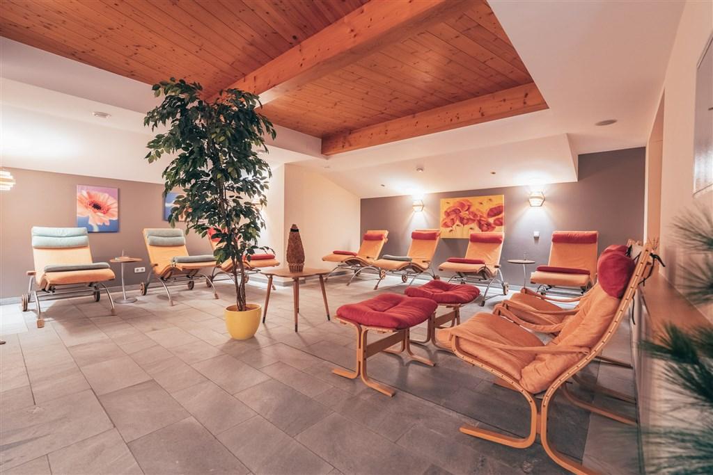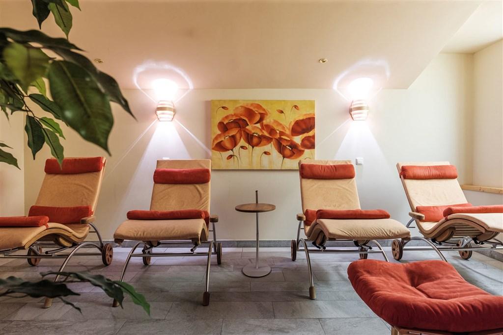 vyhřívaná místnost na lyžařské boty se sušákem. Wellness centrum (cca 300 m²) se saunou, venkovní saunou, vířivkou a parní lázní. Krytý bazén (cca 48 m²) s masážními tryskami a vyhřívaným venkovním bazénem; vnitřní a venkovní bazény jsou propojeny. Za poplatek solárium, kosmetika, masáže, zapůjčení županu a papuček. |