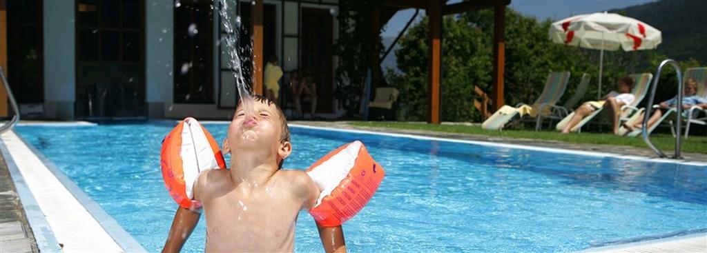 vnitřní a venkovní relaxační hotelový bazén, koupaliště KRIMML (500 m) - velký vyhřívaný plavecký bazén s travnatou pláží, brouzdaliště a dětská skluzavka; krytý bazén KRISTALL ve Wald im Pinzgau (5 km); přírodní koupaliště HOLLERSBACH (30 km) s plno atrakcemi (plážový volejbal, tenis aj.) |