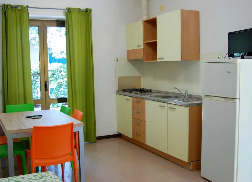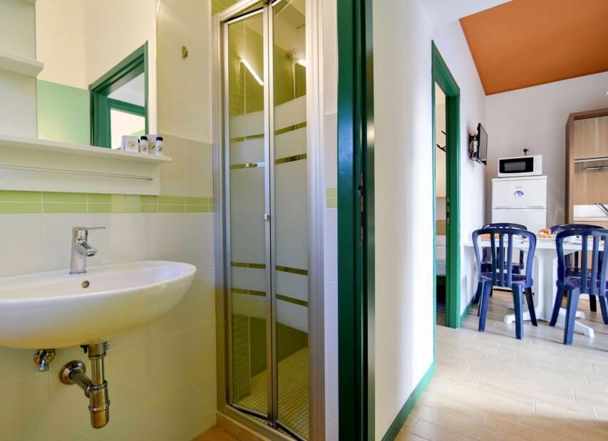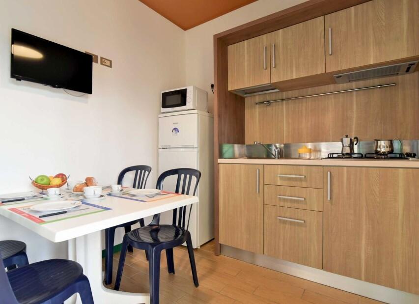 Ubytování je zajištěno v mobilhomech a apartmánech, všechny ubytovací jednotky mají vlastní sociální zařízení, TV, klimatizaci, topení a terasu s venkovním posezením. Ke každému ubytování náleží vyhrazené parkovací místo. Za kempem v bezprostřední blízkosti vede železniční trať, která však díky uspořádání aktivit a ubytování v rámci areálu nemá vliv na klidný průběh dovolené.