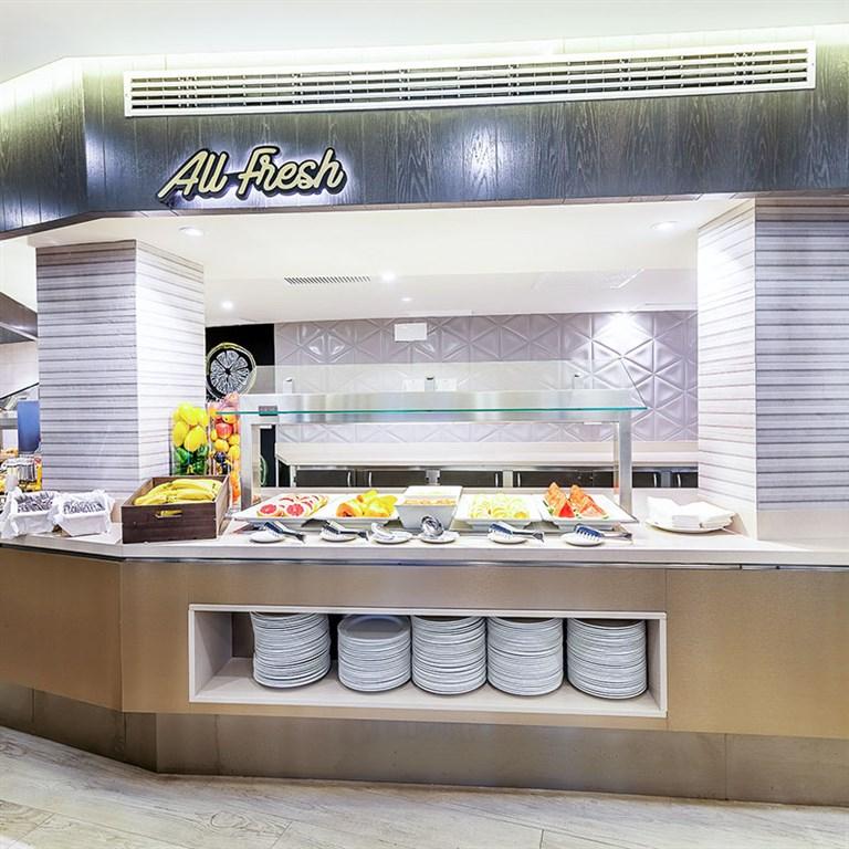 Snídaně, obědy a večeře jsou formou švédských stolů v hotelové restauraci. Program all inclusive zahrnuje plnou penzi, lehké občerstvení, nealkoholické a alkoholické nápoje místní výroby během dne.