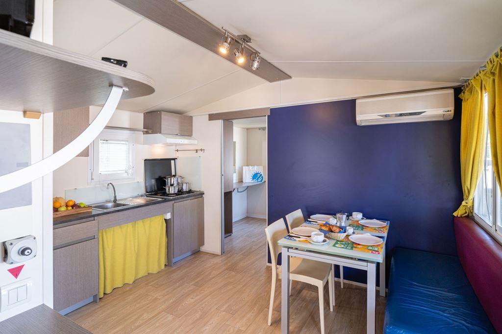 Mobilhome: Lodge Comfort DOG pro 4 osoby (cca 24 m2) se skládá z ložnice s manželským lůžkem, další ložnice se 2 samostatnými lůžky a obývací části s kuchyňským koutem. Lodge Deluxe DOG pro 6 osob (cca 34 m2) se skládá z ložnice s manželským lůžkem, dalších 2 ložnic se 2 samostatnými lůžky a obývací částí s kuchyňským koutem. Všechny apartmány (jedná se o mobilhome) jsou funkčně zařízeny a vybaveny sociálním zařízením (typ Deluxe DOG má 2), klimatizací, SAT TV, mikrovlnnou troubou a oplocenou verandou.