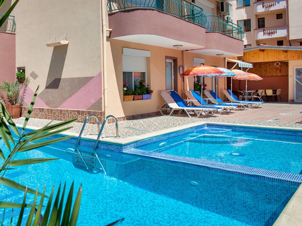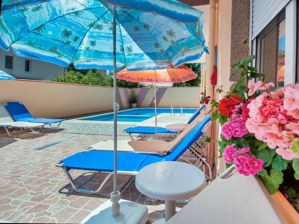 bazénu. Zdarma: Wi-Fi ve společných prostorách, slunečníky a lehátka u bazénu. Za poplatek: dětská postýlka bez lůžkovin (nutno předem objednat, platba v místě pobytu, orientační cena cca 3 EUR/noc). |