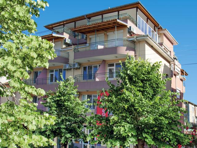 Nachází se v klidné části letoviska. Je vzdálen cca 300 m od severní písčité pláže, cca 500 m od jižní pláže a cca 450 m od centra. |