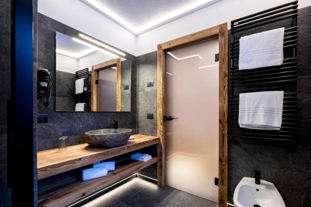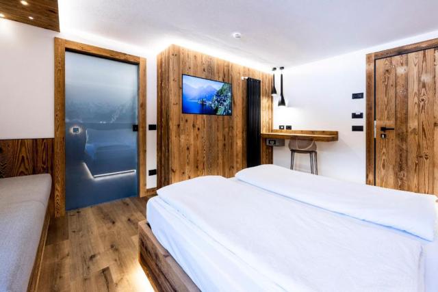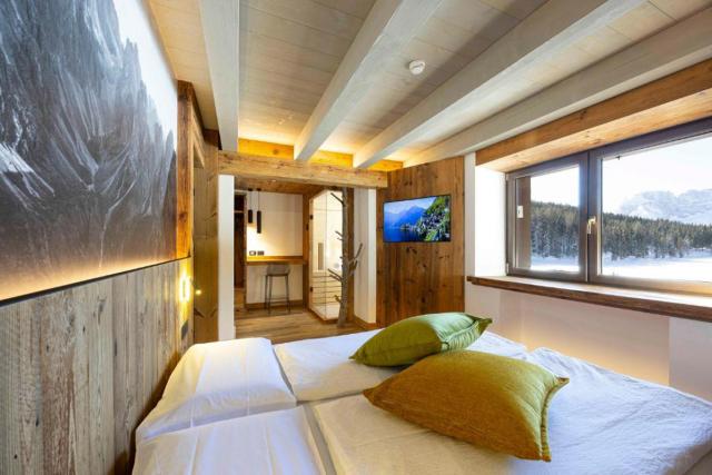 luxusně zrekonstruované pokoje dle našeho názoru převyšující oficiálně uváděný počet hvězdiček#poloha na klidném místě u jezera#přátelská atmosféra a výborná domácí kuchyně#pokoje Superior po kompletní rekonstrukci#na danou oblast velmi zajímavé cenové relace#kouzelná sluneční terasa s výhledem na jezero pro klidný polyžařský odpočinek#absence relaxačního zázemí (-)#bohužel bez skibusového spojení do centrální Cortiny (-) |