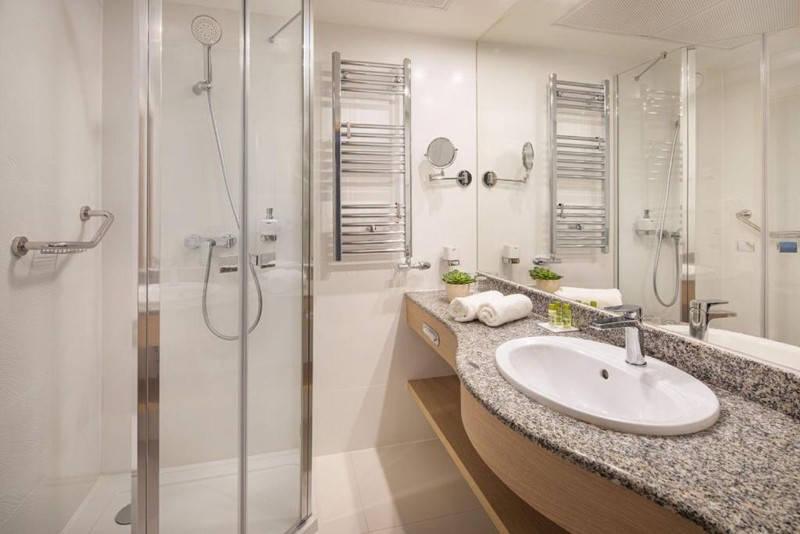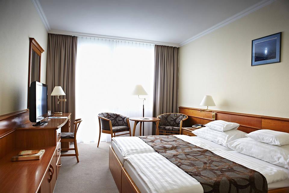 Pokoje STANDARD PLUS: 1 a 2-lůžkové pokoje (cca 22 m2), možnost přistýlky pro děti, hygienické zařízení, klimatizace, TV, minibar, trezor, telefon, fén, balkon, WiFi internet, rychlovarná konvice s kávovým/čajovým setem.