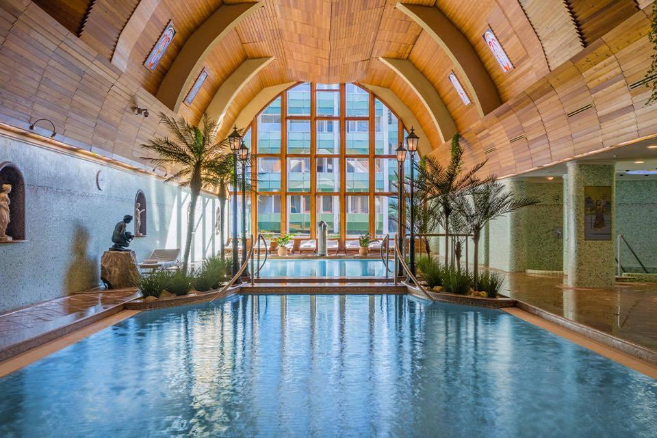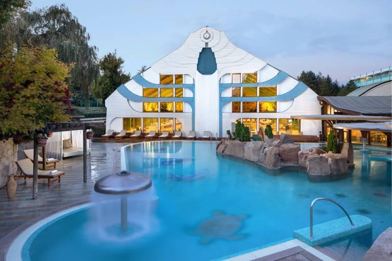 hotelové bazény (venkovní zážitkový a dětský bazén, vnitřní plavecký bazén, wellness bazén, termální bazén).Termální jezero a lázně - 500 m od hotelu.