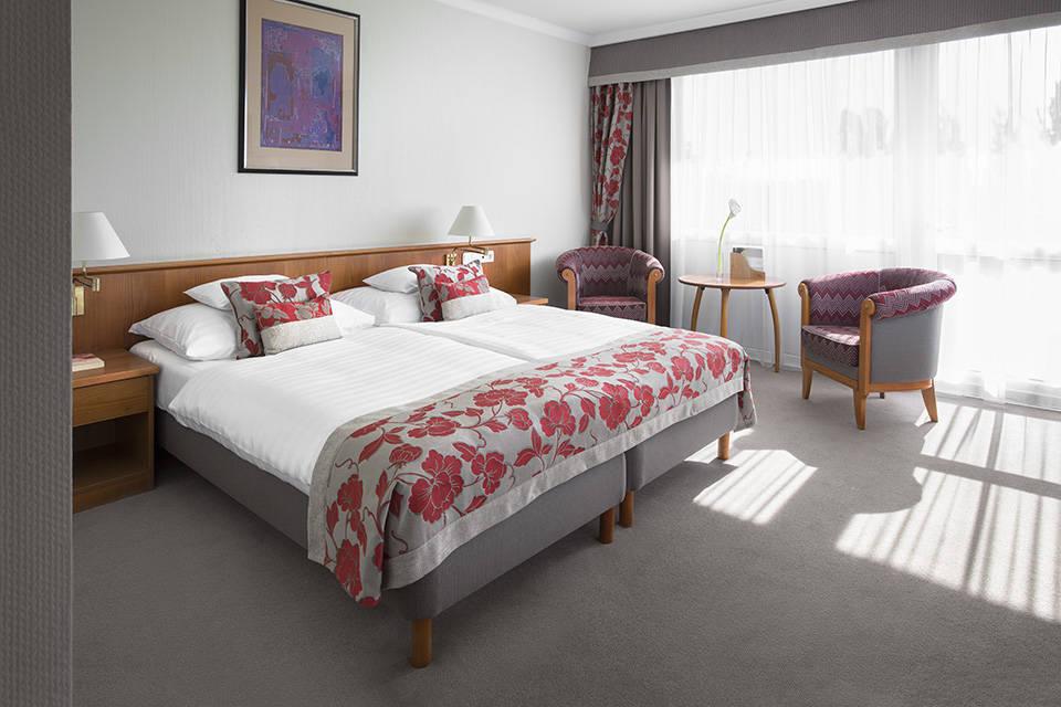 Pokoje DELUXE: 2-lůžkové renovované pokoje v elegantním designu (cca 20 m2), hygienické zařízení, klimatizace, TV, minibar, telefon, fén, trezor, kapslový kávovar, balkon, WiFi internet.