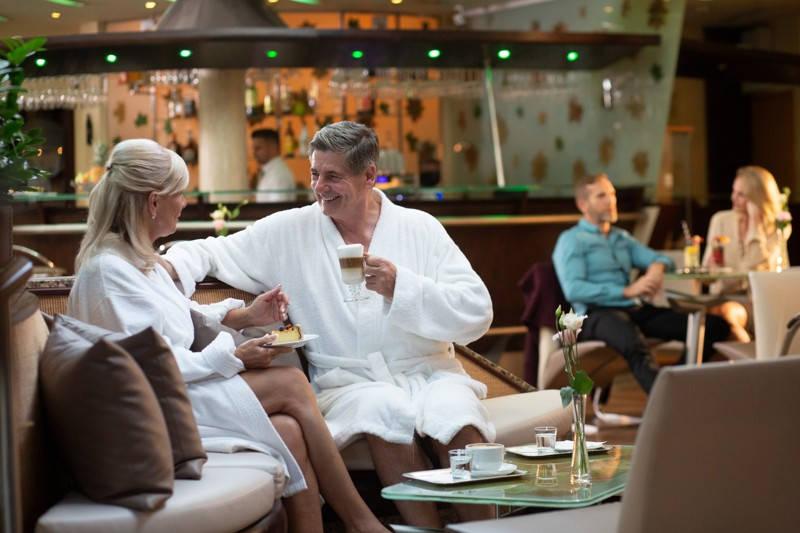 restaurace, kavárna, bar, wellness centrum (bazény o rozloze 1.000 m2 - venkovní zážitkový a dětský bazén, zahrada s lehátky, vnitřní plavecký bazén, relaxační bazén s termální vodou a sedací bazén s termální vodou), saunový svět (aroma, parní, finská a infra sauna, tepidarium), fitness. Léčebné centrum (masáže, vodoléčba, zábaly, magnetoterapie, kryoterapie, cvičení,...). Dětské hřiště, zahrada. Půjčovna elektrokol. Parkoviště s dobíjecími stanicemi pro elektromobily.