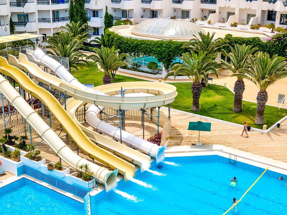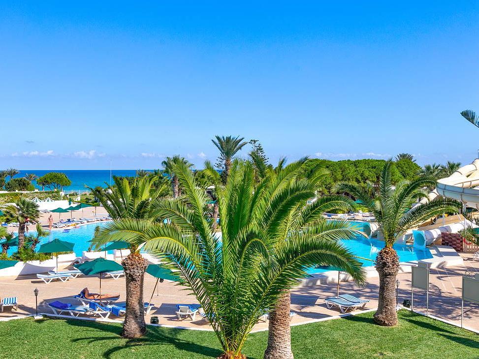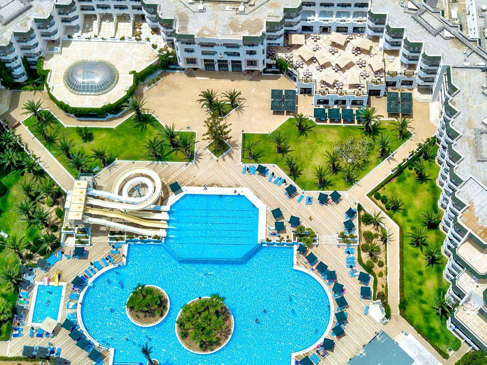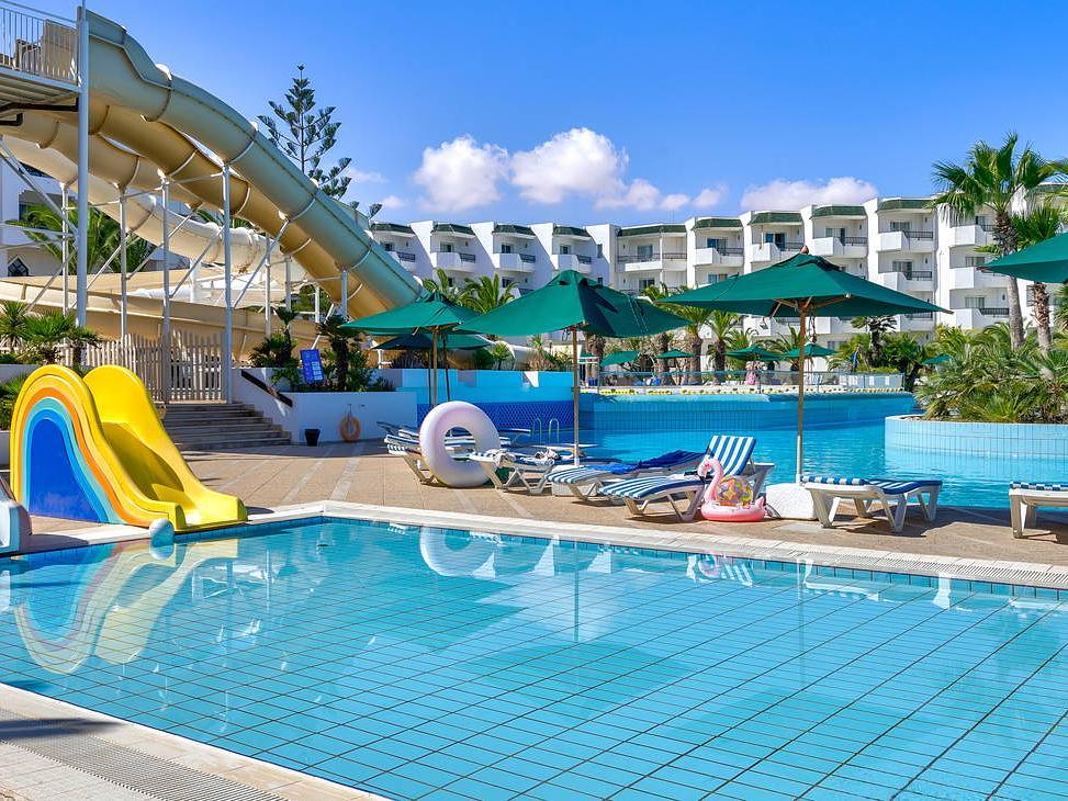 Recepce, výtahy, hlavní restaurace, restaurace a la carte - tuniská a středomořská kuchyně; plážová restaurace, 3 bary, kavárna, 3 bazény, dětské brouzdaliště, aquapark, lázně (za poplatek). . |