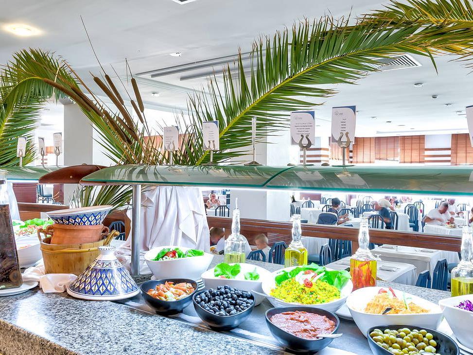All Inclusive: Snídaně, obědy a večeře se podávají formou bufetu v hotelové restauraci. Odpolední občerstvení ve vyhrazených prostorách. Jednou za pobyt bezplatná večeře v restauraci a la carte po předchozí rezervaci - tuniská a středomořská kuchyně. Nealkoholické nápoje a místní alkoholické nápoje v určených barech a časech. |