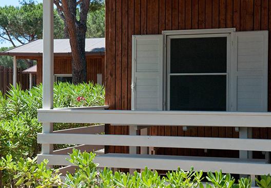 bungalovy se sprchou a WC, kuchyňský kout, gauč, 2 x oddělená ložnice( 2 lůžka + palanda), topení, klimatizace, SAT-TV, lednice, Veranda, povlečení, ručníky, bungalov je nutno uklidit, nebo poplatek za úklid 50,- EUR.A: Typ C2 Chalet Comfort DOG pro 4 osoby B: Typ MH2B Lodge Comfort PLUS pro 5 dosp. osoby + 1 dítě do 10 let
