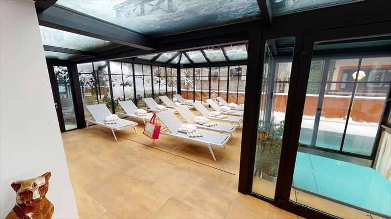 v ceně venkovní vyhřívaný bazén 4 x 8 m, sauna, pára a biosauna. |