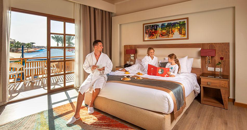 Rodinný pokoj s výhledem na bazén Rodinný pokoj se dvěma ložnicemi a výhledem do zahrady