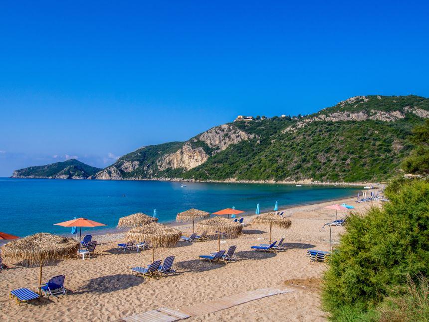 Agios Georgios nabízí krásný výhled na širé moře a patří k nejkrásnějším střediskům na ostrově. Toto klidné a romantické místo doporučujeme všem těm, co netouží po rušných promenádách a nočním životě. Na pláži najdete nejen pásma se slunečníky a lehátky, ale i zákoutí s minimálním počtem lidí. Příznivce potápění a milovníky moře budou lákat zdejší útesy s podmořským životem. Okolí Agios Georgios je ideální pro pěší turistiku.