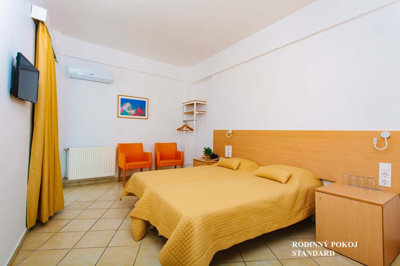 Polopenze - snídaně a večeře formou bufetu. Hotelová restaurace Vám nabídne pokrmy inspirované řeckou tradiční a mezinárodní kuchyní a zároveň nabízí mnoho chutných jídel i pro vegetariány. Možnost zajištění bezlepkové stravy. Během dne si můžete dokoupit občerstvení za velice příznivé ceny v areálu hotelové zahrady - beach bar (pivo, víno, nealko, káva, zmrzlina, saláty, hod dog, hranolky, pizza, souvlaki, mořské plody). |