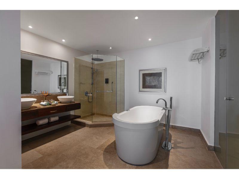 • Executive Suite Garden View - living room and bedroom. In the living room - sofa, dining area. In the bedroom - double bed. In the bathroom - jacuzzi bath. Garden view.