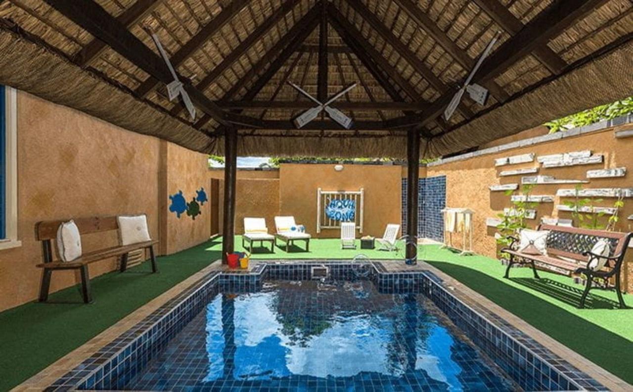 dvojdomku. Vila Luxury má cca 275 m² (včetně zahrady), má stejné vybavení jako pavilon, navíc privátní zahradu a altánek s posezením. Tuto vilku lze také rezervovat s privátním bazénem, který je v chladných měsících vyhřívaný (celkem 325 m²). |