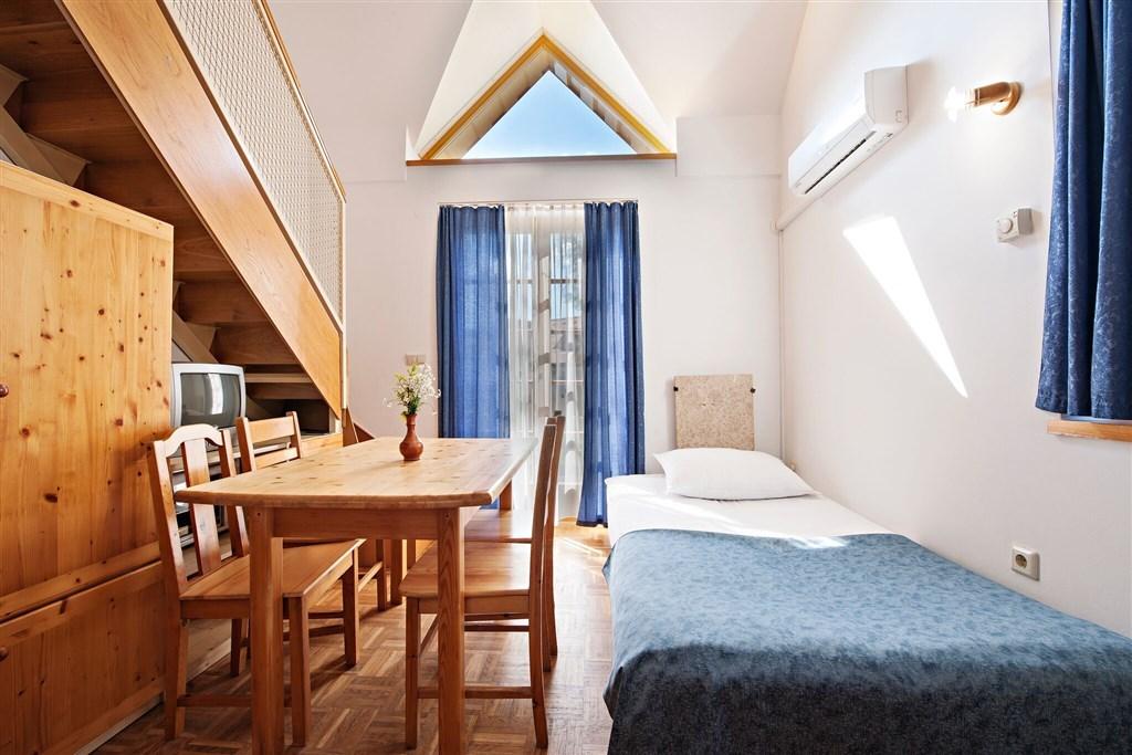 2+1 - 2lůžkové pokoje s možností přistýlky. 2+0 - 2lůžkový pokoj. Pohodlně a komfortně vybavené apartmány až pro 3 osoby o rozloze cca 50 m2. Pokoje jsou vybavené: sprcha, WC, TV, kuchyňský kout. |
