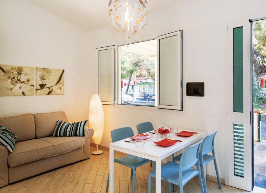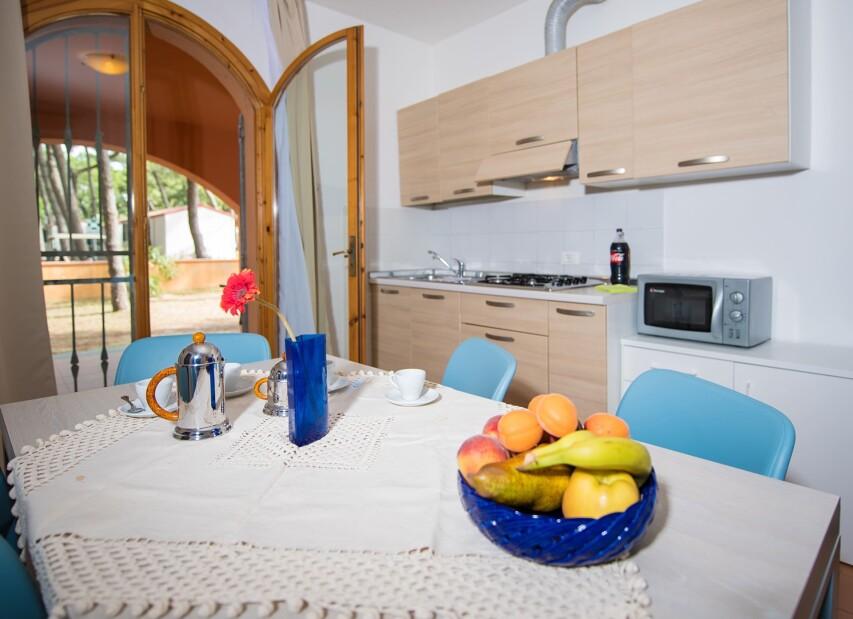 Villaggio MARINA (Via delle Acacie) se rozkládá přímo u privátní pláže ve stínu pinií na prostorném pozemku. Klientům je k dispozici bazén pro dospělé, dále nově vybudovaný vodní park s bazény a atrakcemi pro děti (v provozu cca 16.05. - 20.09.2026, pro ubytované klienty zdarma, pro návštěvníky za poplatek), restaurace, pizzerie, bar, supermarket, prádelna, bankomat a parkoviště. Komplex nabízí bohaté sportovní vyžití i zábavné animace (v provozu cca 01.06. - 06.09.2026). Klienti mohou využít za poplatek lékařské služby, stanice pro dobíjení elektromobilů, fitness centrum se spinningem, saunou a solární terasou. Wi-Fi je k dispozici ve společných prostorách, v centrální části kempu, u bazénu, na pláži a v restauraci. Na pláži lze využít hřiště na plážový volejbal, kurzy windsurfingu, kanoe, lukostřelbu a v bazénu kurzy plavání pro děti i dospělé. V aquaparku jsou k dispozici bazény s dětskými hrami. V centru kempu se nachází dětské hřiště, na zelené ploše mezi kempem a pláží dětské hřiště a na pláži skluzavka a kolotoč. Apartmány a přízemní vilky mají vlastní sociální zařízení (vilky dvojí), TV/SAT, mikrovlnnou troubu, klimatizaci, topení a terasu nebo zahrádku s venkovním posezením. Apartmány jsou umístěné v blízkosti pláže, typ Marina bilo má navíc barbecue, typ vilka Marina III je nejprostornější. Ke každému apartmánu nebo vilce je vyhrazeno jedno parkovací místo. |