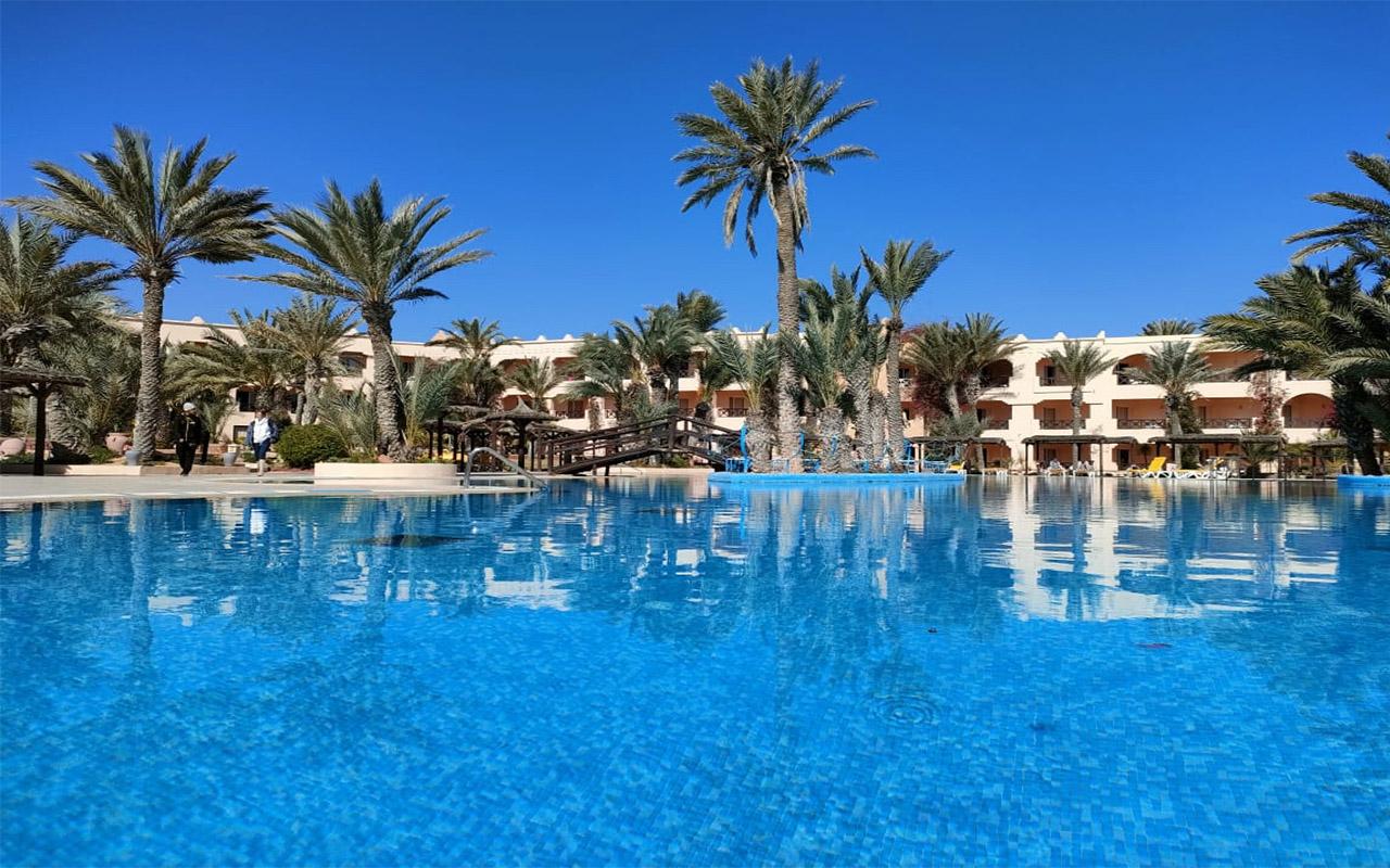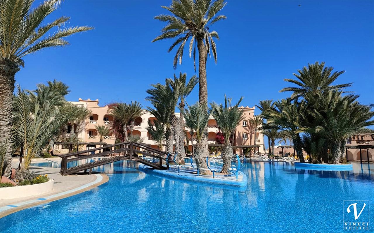 Zažijte luxus v hotelu Vincci Safira Palms v Zarzisu, Tunisko. Užijte si úchvatné výhledy, elegantní pokoje a špičkové vybavení včetně wellness, bazénu a různých možností stravování, ideální pro rodiny a páry. |